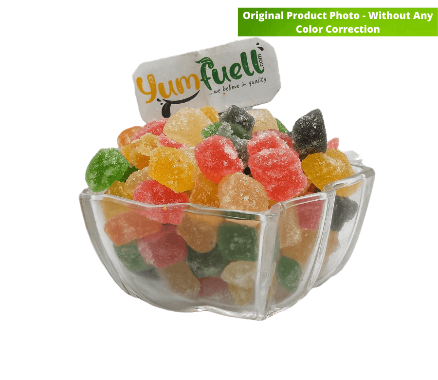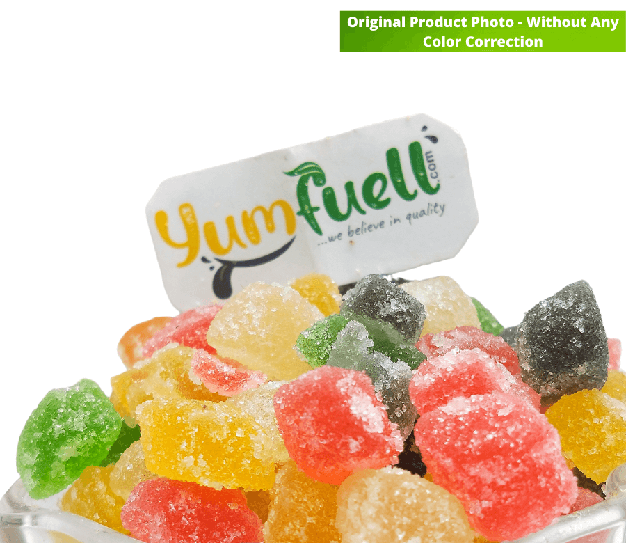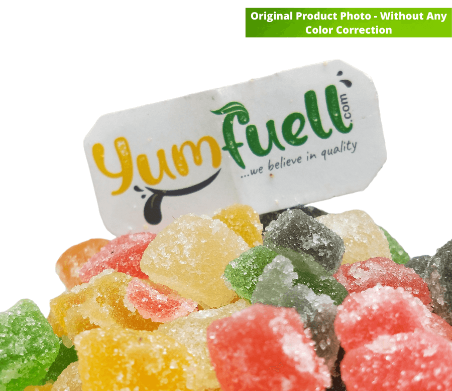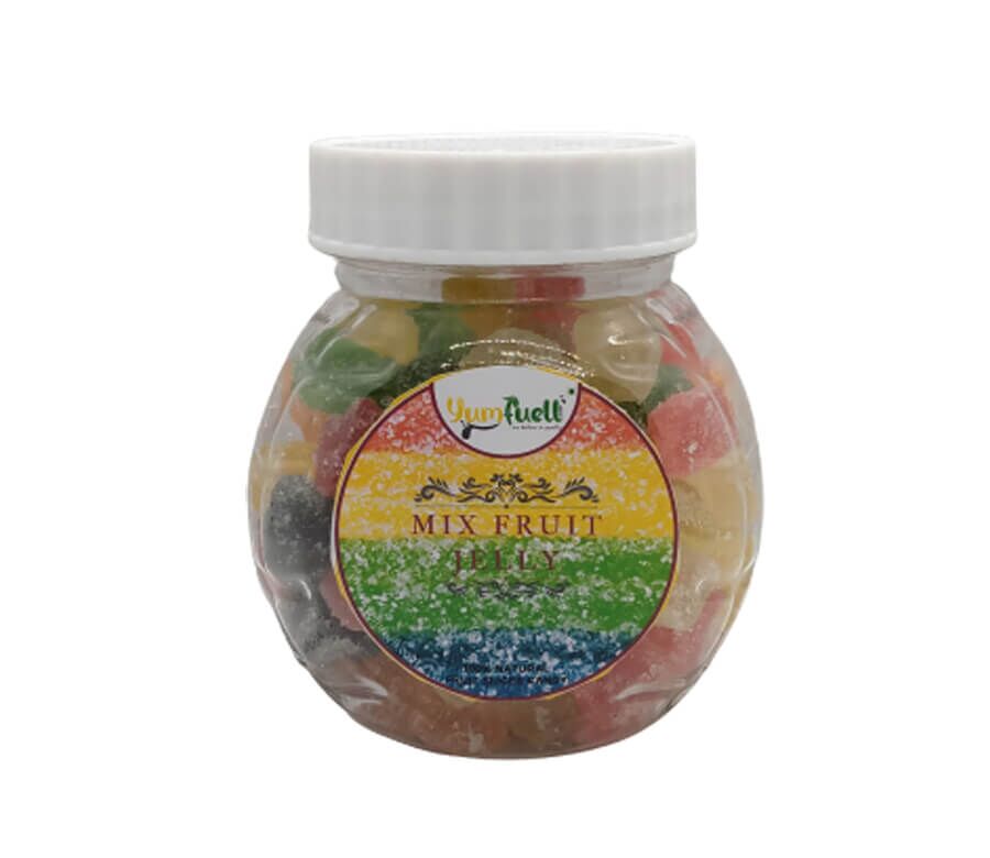 Yumfuell Jelly Beans are made with real fruit pulp, these fruit jellies are an absolute treat for all. Spongy and easy to chew giving a great flavour. Jelly despite of being sweet has many nutritional benefits for the body. Do not get amazed, it does have benefits that can really be good for the body. Soft chewy jelly candies are slightly sugar coated to give the sparkle look. It can be used in cake decoration, of sprinkle on cake pastries, smoothies, faluda and other bakery products. Kids surely love these jellies candies. There is No Gelatin, just jelly beans candies.
